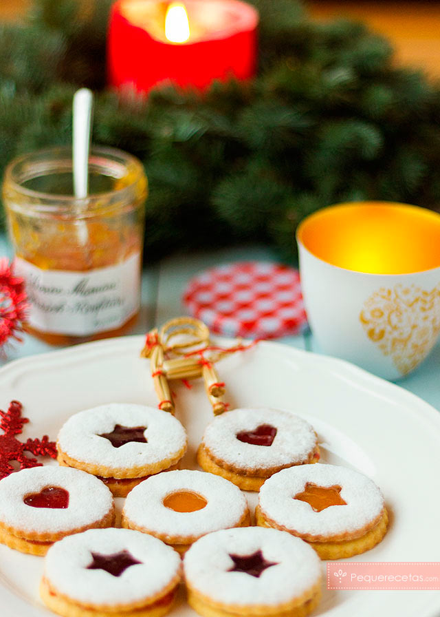 Estas galletas de mantequilla, que habitualmente llevan avellana o almendra molida, rellenas de mermelada y espolvoreadas con azúcar glass, tienen su origen en Austria, concretamente en la ciudad de Linz, y dicen que son una variante de la austríaca Linzer Torte, que por si no lo sabéis es la receta de tarta conocida más antigua del mundo.