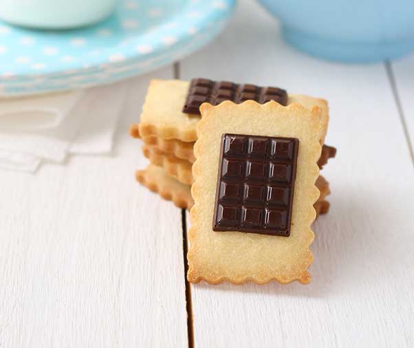 Un siglo más tarde, en la década de los ochenta, el dibujo que identificaba a las galletas se moldeó en chocolate para añadirlo a las galletas, y a partir de entonces estas galletas con chocolatina se empezaron a conocer mundialmente.