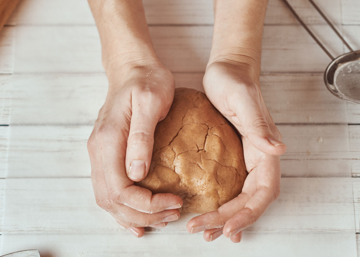 - Agregamos la harina, y amasamos hasta que nos quede una masa lisa y suave.