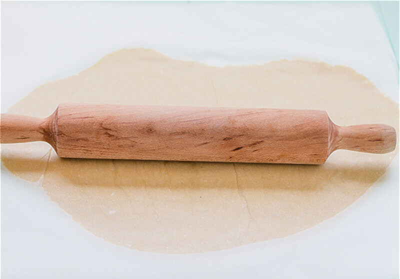 - Amasar brevemente sobre una superficie enharinada y extender la masa con un rodillo dejando un espesor de 6-7 mm aproximadamente.