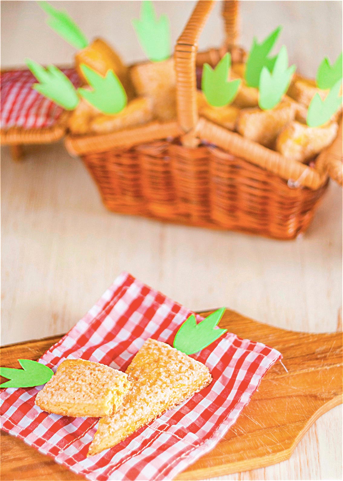 Se trata de unas galletas de zanahoria blandas, con una cobertura crujiente de azúcar dorada. Por este motivo son galletas para comerlas en el día, ya que con el pasar del tiempo el azúcar pierde ese punto crocante. Son muy sencillas de hacer, no necesitáis moldes ni cortantes especiales y además, son muy bonitas de ver.