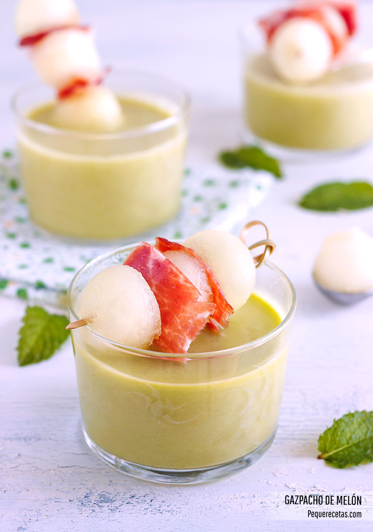 El gazpacho es una sopa fría con ingredientes como aceite de oliva, vinagre, agua, hortalizas crudas, generalmente tomates, pepinos, pimientos, cebollas y ajo. A lo largo de los años se han ido descubriendo variantes en las que las frutas toman el papel principal, y así han surgido variantes del gazpacho tradicional, como el gazpacho de sandía, el gazpacho de fresas, de aguacate, o, como en este caso, el gazpacho de melón.