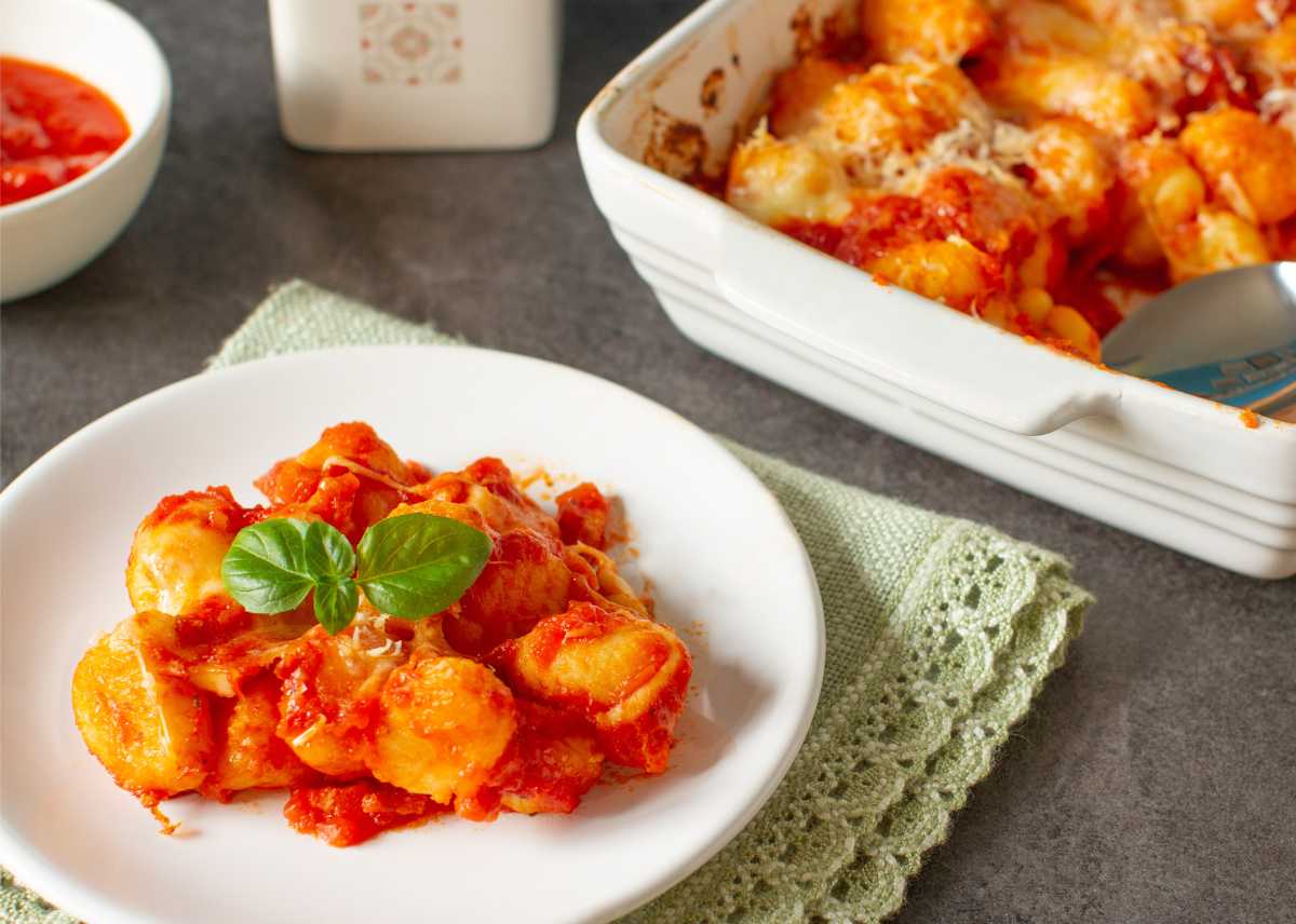 Esta receta de gnocchi en salsa de tomate y queso al horno es una receta contundente, por lo que lo ideal para acompañarlos es una ensalada