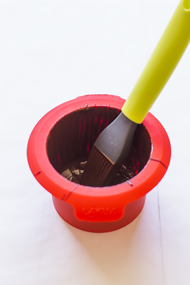 • Pincelamos bien la base del molde y a continuación las paredes hasta cubrirlo por completo.