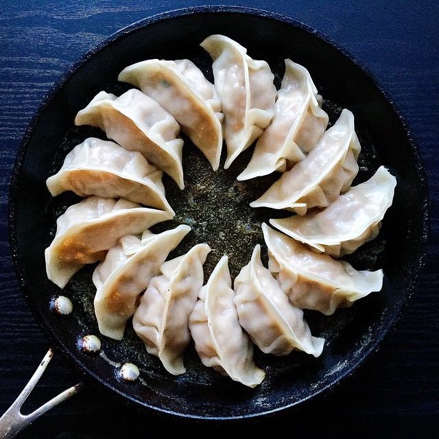 - Una vez caliente, coloca las gyozas en la sartén en una sola capa y fríe durante 2-3 minutos o hasta que estén doradas por un lado.