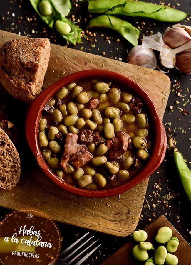 Las habas a la catalana son un plato delicioso, tradicional y genuino, que aprovecha lo mejor del huerto en primavera: las habas frescas, la cebolleta y los ajos tiernos, las hierbas aromáticas… es una preparación sencilla, contundente ya que además de las verduras lleva panceta y butifarra, con un contraste de sabores espectacular.