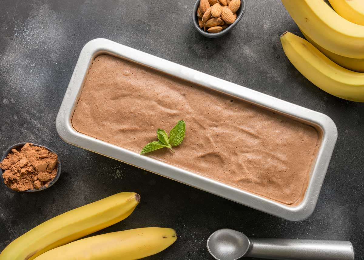 Y finalmente un helado de chocolate y plátano, con solo esos dos ingredientes, que os recomendamos probar porque os sorprenderá lo fácil que es y lo rico y cremoso que está.