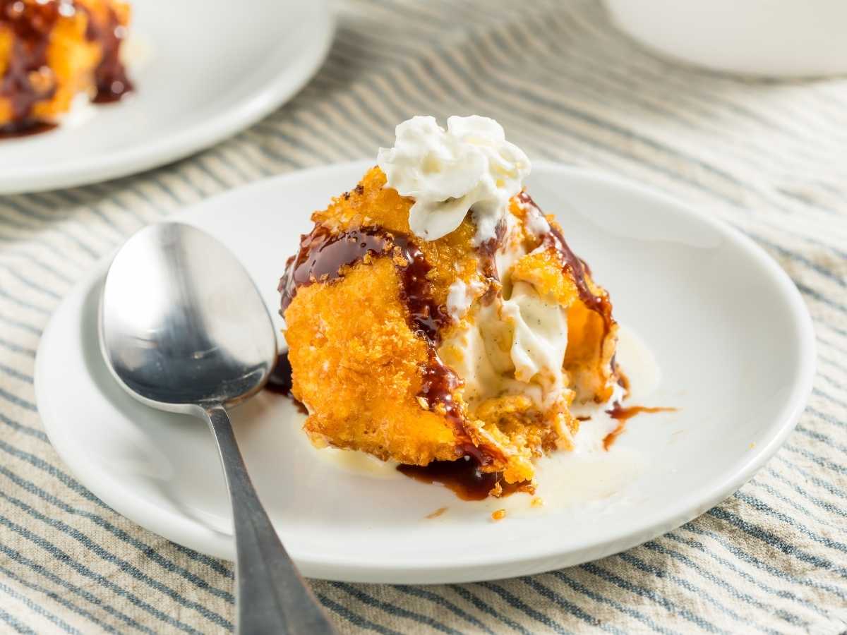 Aunque no sabemos exactamente dónde se originó el helado frito al estilo chino, empezó a aparecer en restaurantes chinos en América hace algunas décadas. Esta locura de postre combina lo imposible: frío por dentro y caliente por fuera.