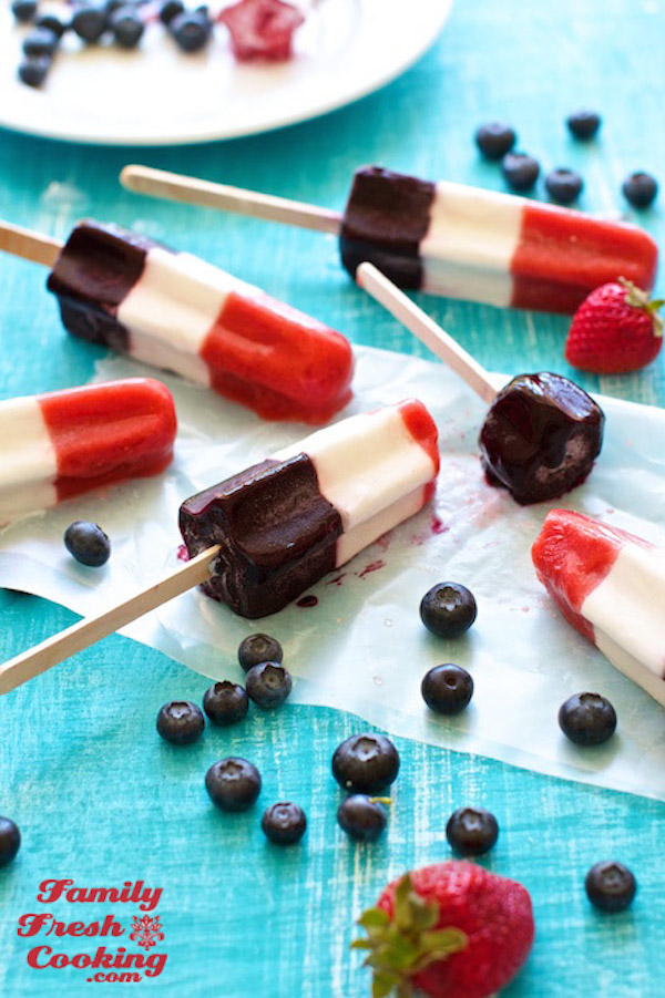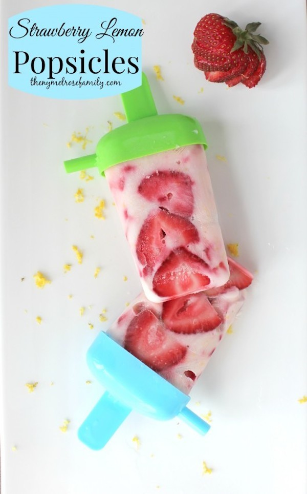 Parece que los cítricos se llevan muy bien con las fresas y en este caso, además se agrega yogur griego para un polo realmente saludable y ¡delicioso! Basta mezclar yogur griego, puré de fresas frescas, zumo de limón y un poco ralladura de limón para perfumar. Si queréis, podéis poner rodajas de fresa en los bordes del molde para que queden a la vista como en la imagen.