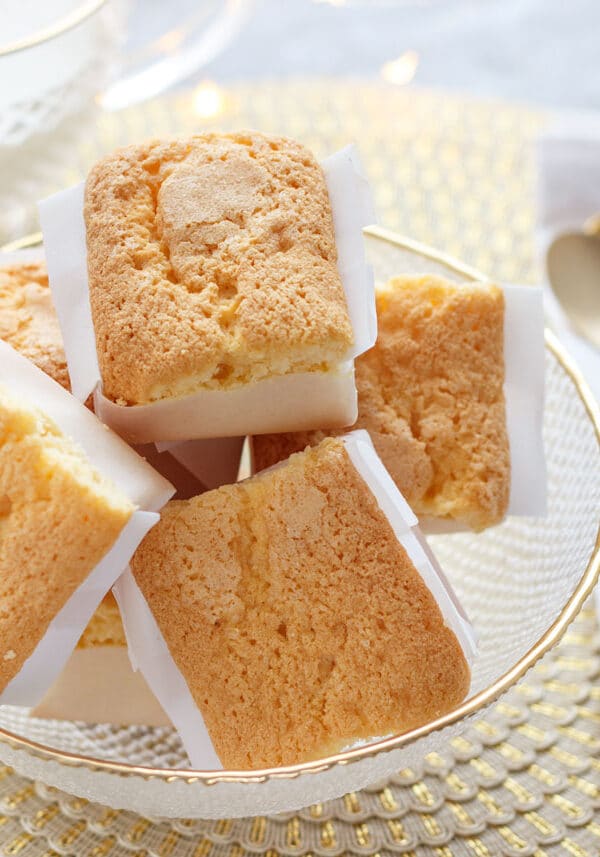 - Si la lámina de hojaldre que utilizas es muy fina, usa 3-4 láminas y 4-5 cuadrados para cada pastel.