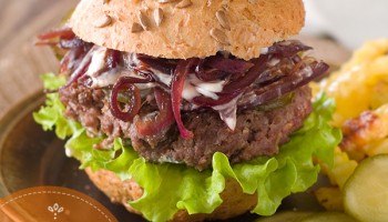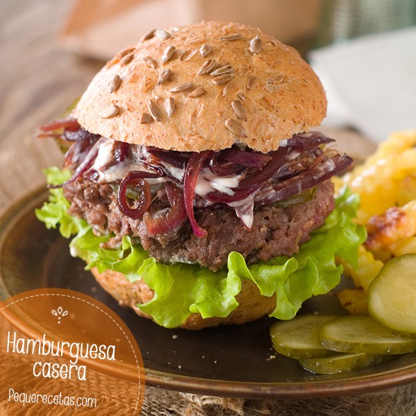 Cuando tenemos ganas de algo muy pero muy “foodporn”, pues nada mejor que una hamburguesa casera con una loncha de queso, ensalada, cebolla y un huevo frito cual corona, ¿no os parece?