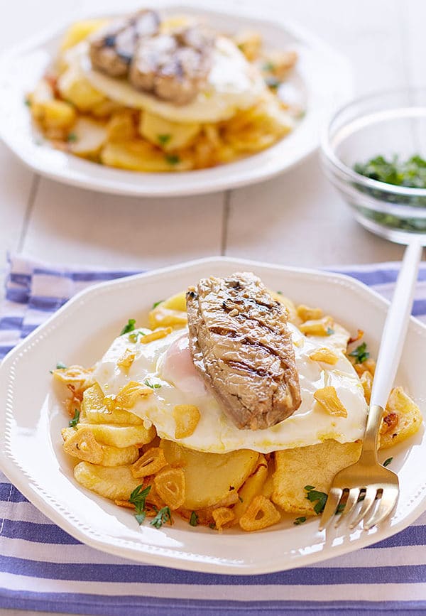 O estos huevos rotos con caballa, en los que aprovechamos todos los beneficios del pescado azul: