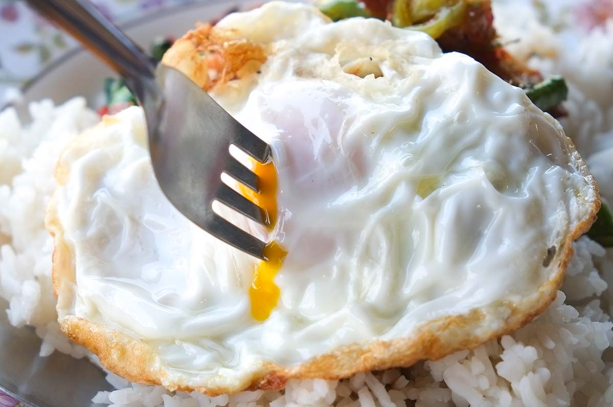 Pero como decíamos al principio, no hace falta nada de particular para acompañar unos buenos huevos fritos. El arroz blanco por ejemplo le va de maravilla, os recomendamos un arroz aromático como el basmati, no hace falta nada más.