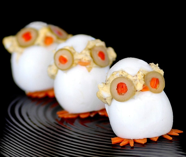 Si buscas una receta para niños divertida para que tus hijos se coman los huevos rellenos al mismo tiempo que se divierten, creo que esta receta de huevos rellenos en forma de búho o “huebuhitos”, os va a gustar.