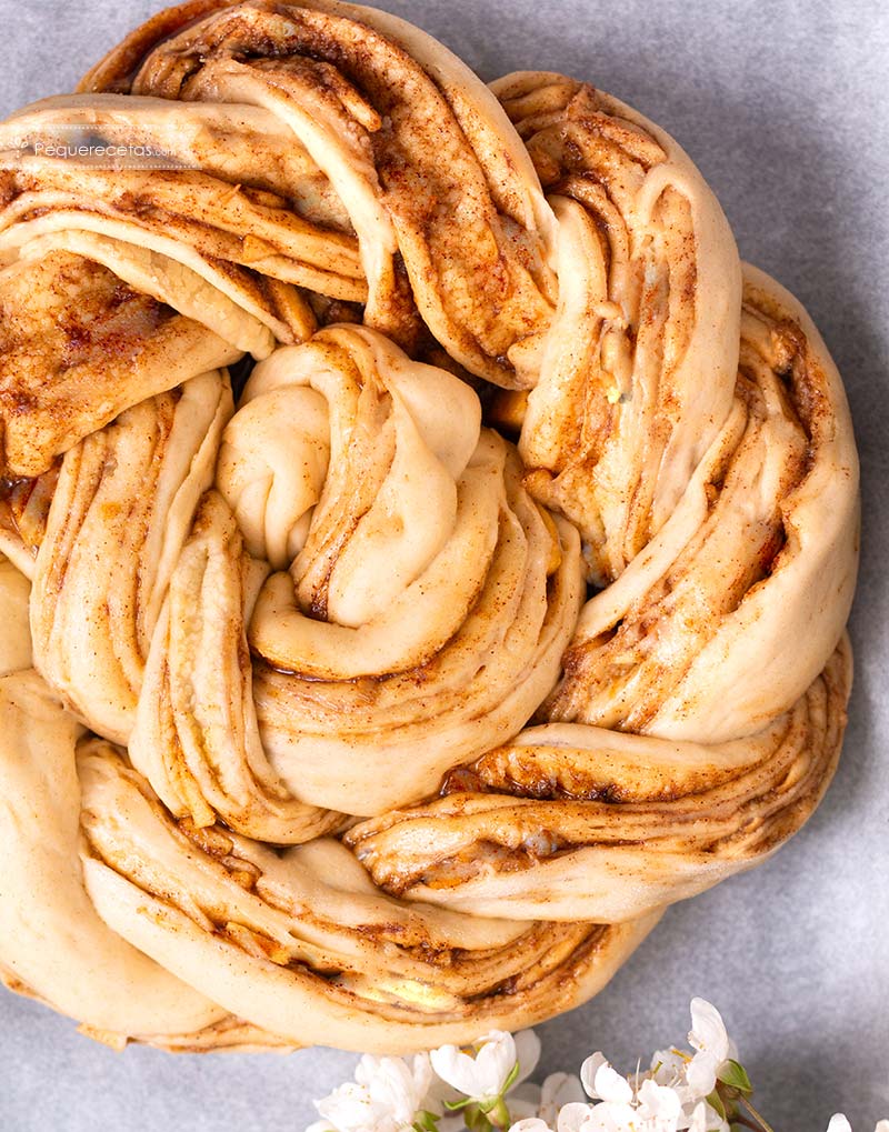 Se trata de una receta con levadura, por lo que aunque no es nada difícil, si que lleva su tiempo. Es una de esas recetas que se hacen con amor y paciencia, dándole el tiempo a la masa de crecer y ponerse hermosa y esponjosa. El relleno de canela, nueces y almendras conquista a cada mordiscón, y la capita dulce de glaseado le da un toque algo crujiente que completa un manjar de los dioses… nórdicos.