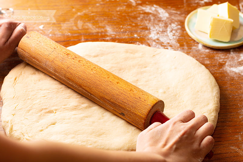 - Luego con el rodillo la extendemos formando un rectángulo de aproximadamente 50 x 40 cm.
