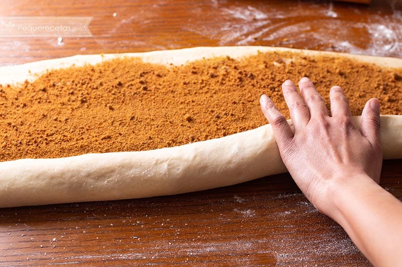 - Nosotros preferimos integrar los frutos secos bien molidos al relleno, pero también si os gusta encontrar los trocitos se pueden esparcir troceados por encima del relleno antes de enrollar. También podemos añadir uvas pasas hidratadas en algún vino dulce, o trocitos de manzana. También se puede hacer una trenza de chocolate usando en el relleno una crema de chocolate para untar.