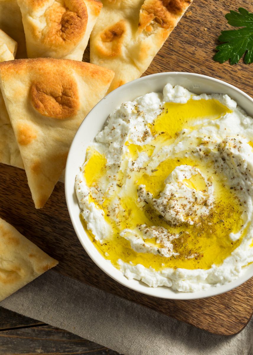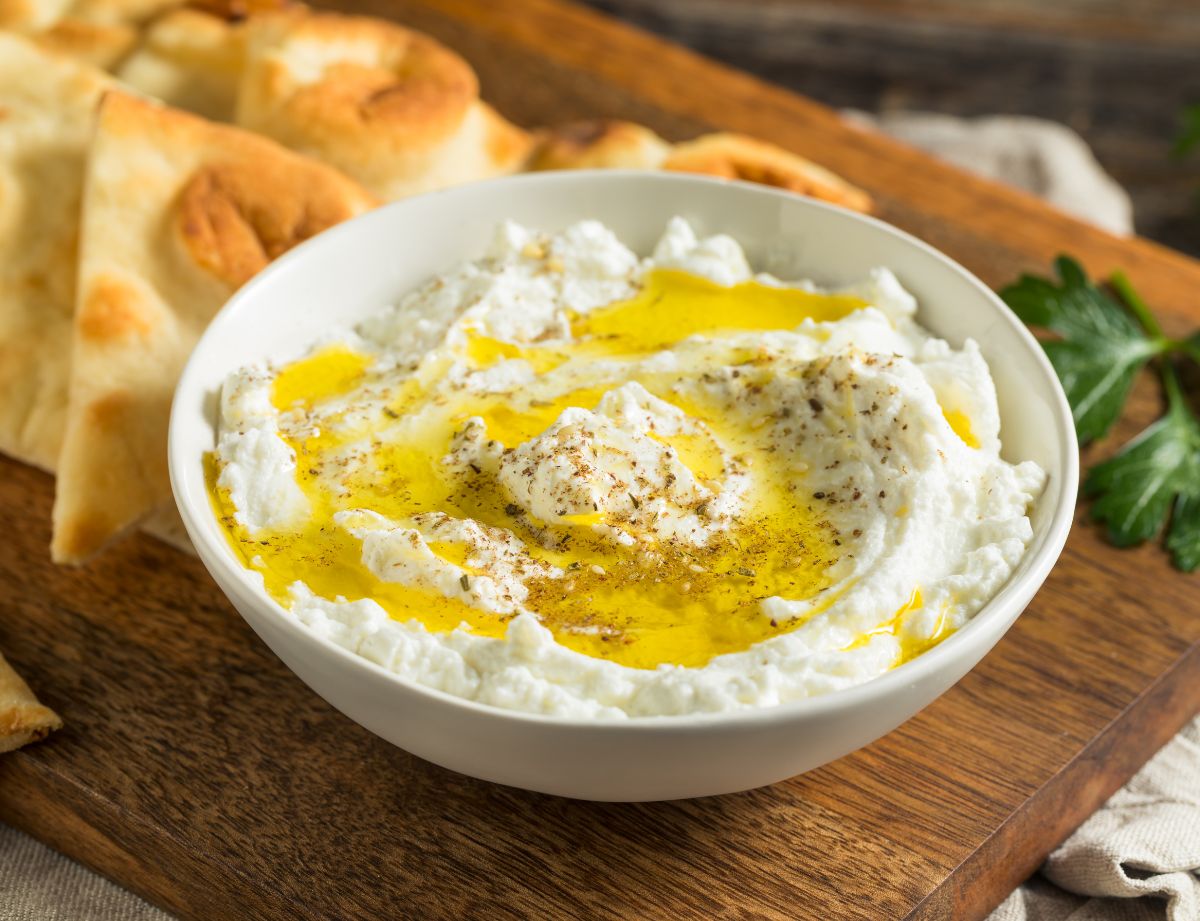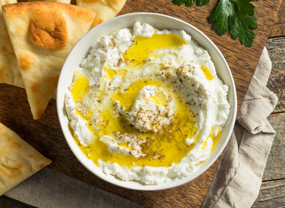 El labneh, también conocido como queso de yogur, es originario de Oriente Medio. Este queso suave y rico se ha convertido en un favorito de quienes buscan una opción saludable y fácil para dipear.