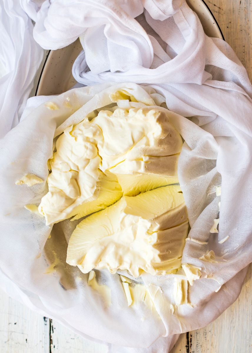 - Después de 24 horas, retira el colador o paño y transfiere el labneh espeso a un recipiente limpio.