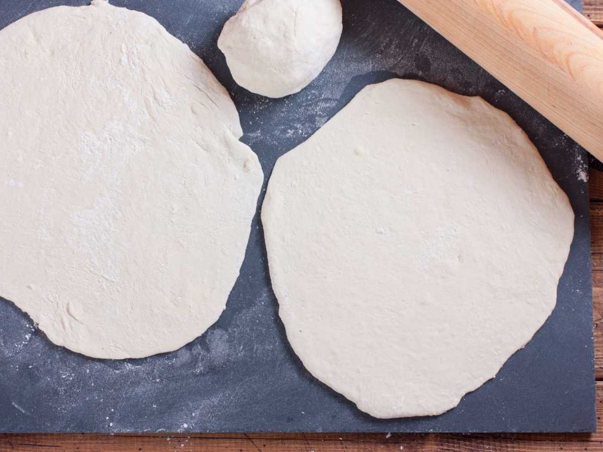 - Divide la masa en bolas del tamaño de una nuez y estira cada una en una superficie ligeramente enharinada hasta que estén muy delgadas.