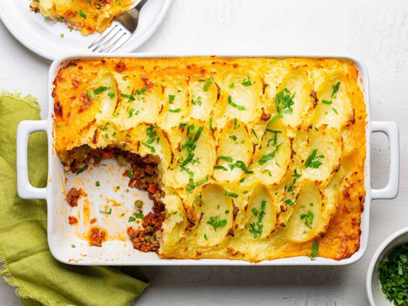 ¿Has probado la lasaña de patata y carne alguna vez? Este plato es una deliciosa alternativa a la clásica receta de lasaña, combinando una base de carne picada y una capa superior de puré de patatas. La lasaña de patata y carne es perfecta para sorprender a tu familia con un plato sencillo de preparar. Acompañada de una ensalada fresca, esta lasaña se convertirá en uno de tus platos favoritos.