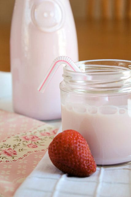 La verdad es que conozco bastantes postres con fresas, pero nunca había oído hablar de la leche de fresa, y me ha parecido que podía ser una original manera de que los niños tomen su ración diaria de lácteos, que debería rondar el medio litro de leche al día.