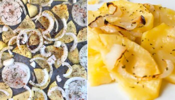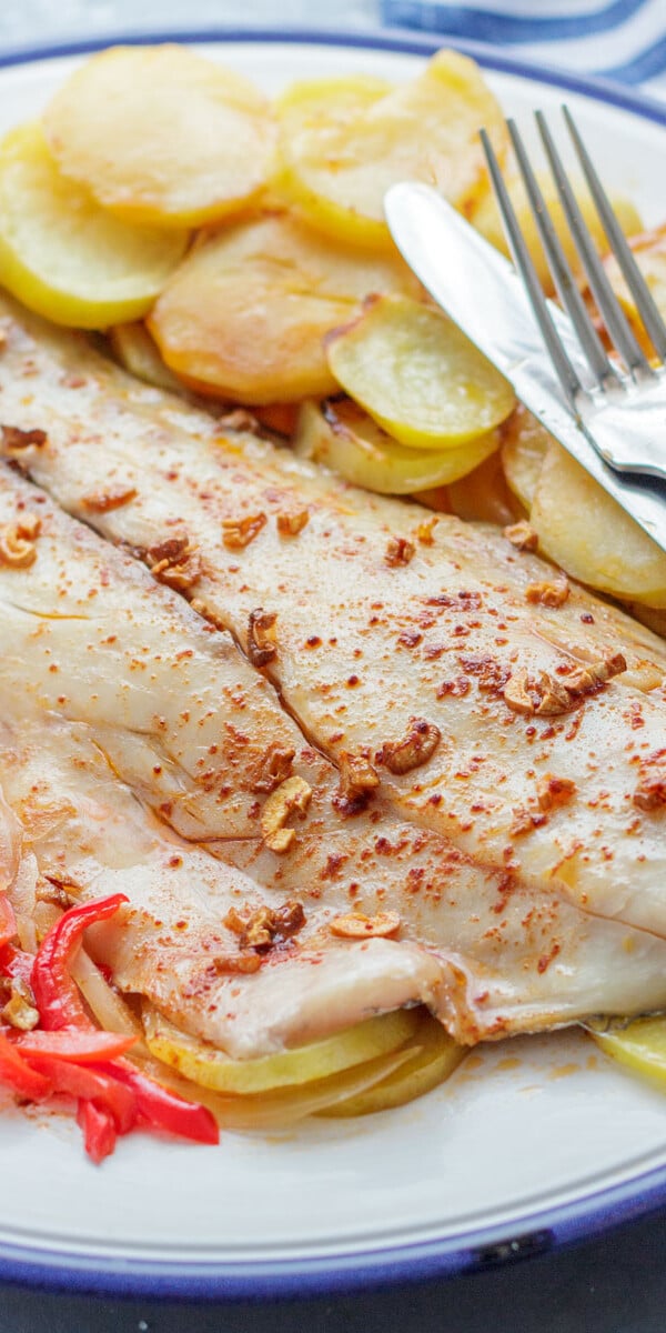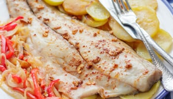 Te explicamos paso a paso como hacer esta receta de lenguado al horno con patatas panaderas y cebolla.