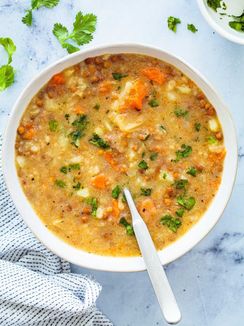 Si prefieres hacer las lentejas con verduras en olla express, sigue los mismos pasos para la preparación de las verduras, y cuando hayas incorporado todos los ingredientes, cierra la olla express. Una vez empiece a salir el vapor cuenta 12 minutos, verás que tus lentejas están perfectas.