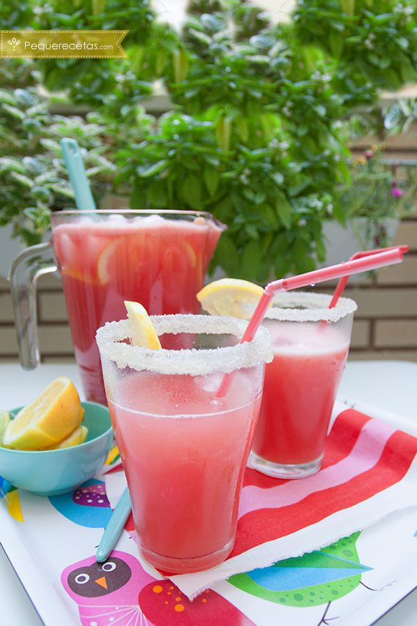 La limonada rosada lleva, además de limón, sandía. Esta fruta además de darle un precioso color rosado aporta además dulzor y su delicioso sabor, por lo que podemos poner menos azúcar, o incluso no ponerla si la sandía es buen dulce. Os dejamos la receta: