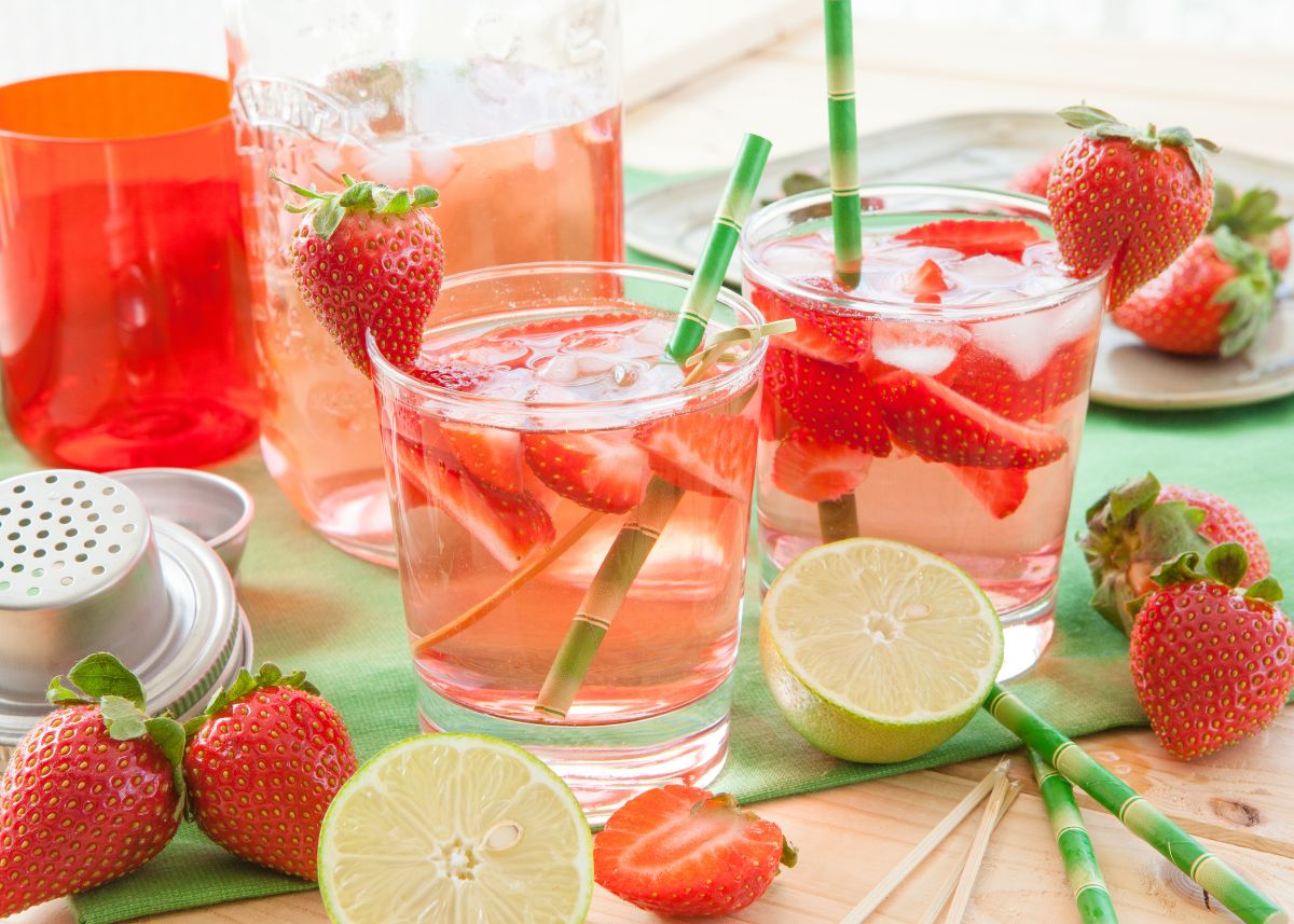 Ingredientes para 4 vasos grandes: 150 ml de zumo de limón recién exprimido; ½ kg de fresas maduras; 1 l de agua; 70 g de azúcar o 50 g de miel (opcional, si las fresas son dulces no hace falta)
