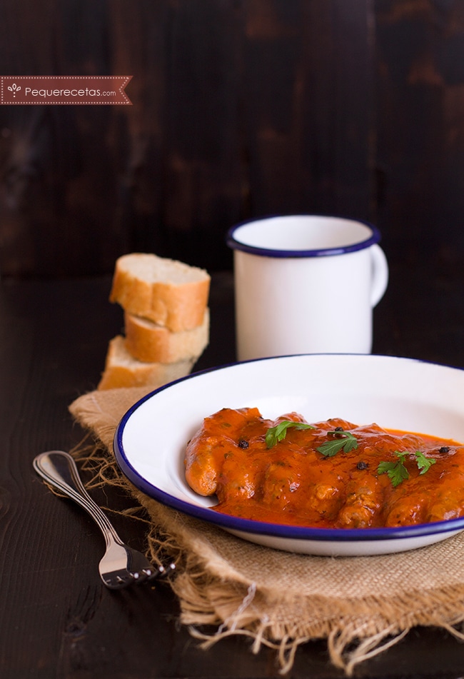 Puedes acompañar estas longanizas con arroz blanco o patatas fritas, y pan para mojar la salsa de tomate.