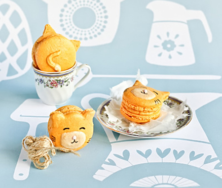 Probad a hacer estos macarons de zanahoria en forma de gato. Los peques se divertirán jugando y comerán, al fin, un poco de zanahoria.