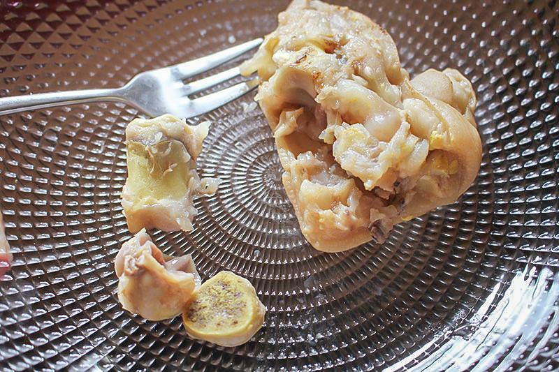 - Si queréis servir las manitas de cerdo guisadas en salsa deshuesadas, una vez cocidas, retiramos los huesos con mucho cuidado de no romperlas. Una vez sin hueso las añadimos al sofrito.