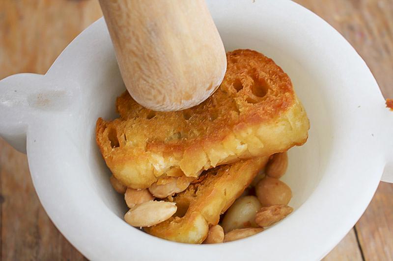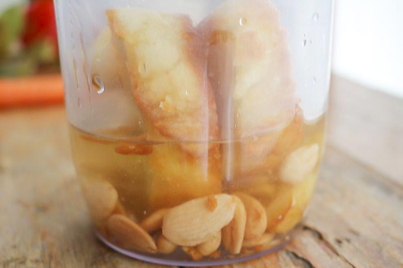 - En ese caso ponéis el pan con las almendras y el vino blanco en el vaso de la batidora