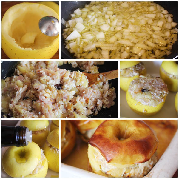 - Ponemos esta mezcla en el interior de las manzanas. La carne al ser picada se cocina enseguida por eso no la cocinamos antes, además con el calor residual veréis como cambia de color.