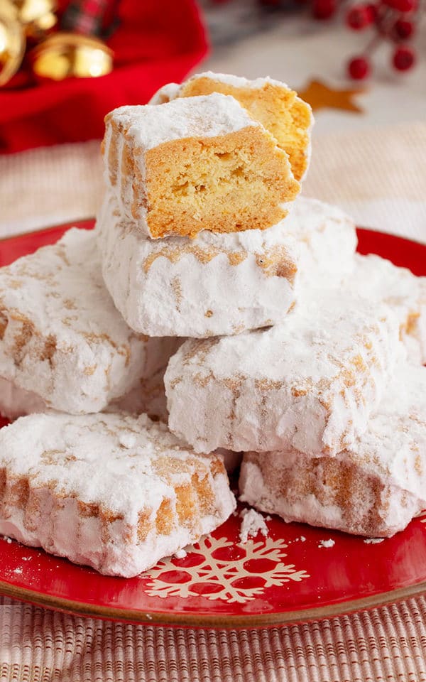 Se trata de galletas de almendra molidas y azúcar, con una textura suave y crocante, que se suelen decorar con azúcar glas.