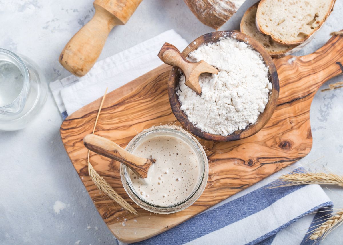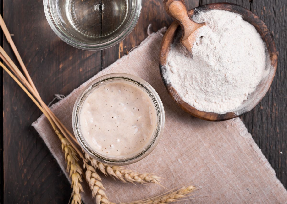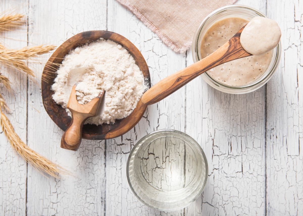 - Harina: puede ser de trigo o de centeno, pero debe ser integral. Esto se debe a que el hongo está presente en la cáscara de los cereales, que se encuentra solo en la harina integral. A partir del 3° o 4° día, cuando la masa habrá fermentado, podemos comenzar a usar harina blanca.