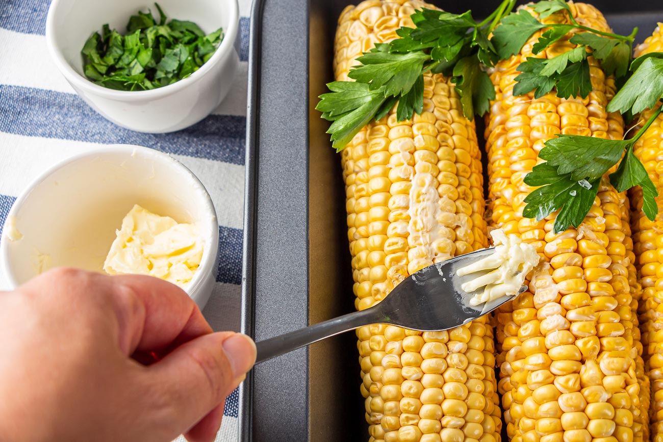 Cómo cocinar mazorcas de maíz al horno con mantequilla