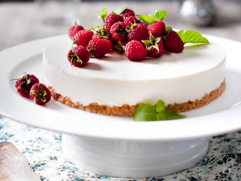 Tarta de queso de cabra con frambuesas