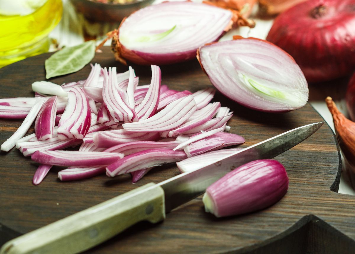 - 1 kg de cebollas rojas o amarillas, peladas y cortadas en tiras finas.
