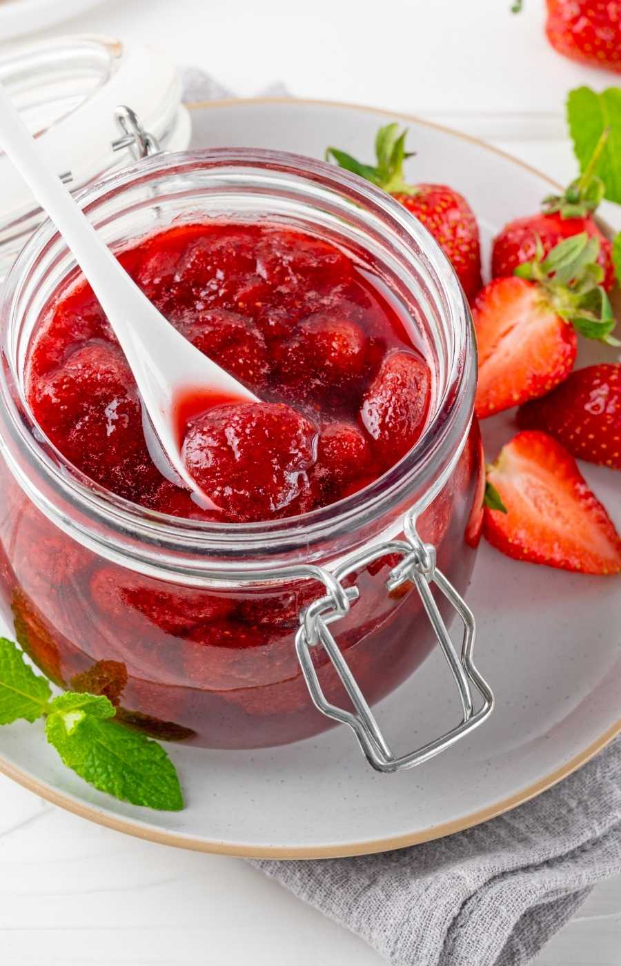 Esta mermelada de fresa es estupenda para las tostadas del desayuno, para la merienda o para utilizar en repostería como en esta tarta de fresas y nata o en la tradicional panacota: