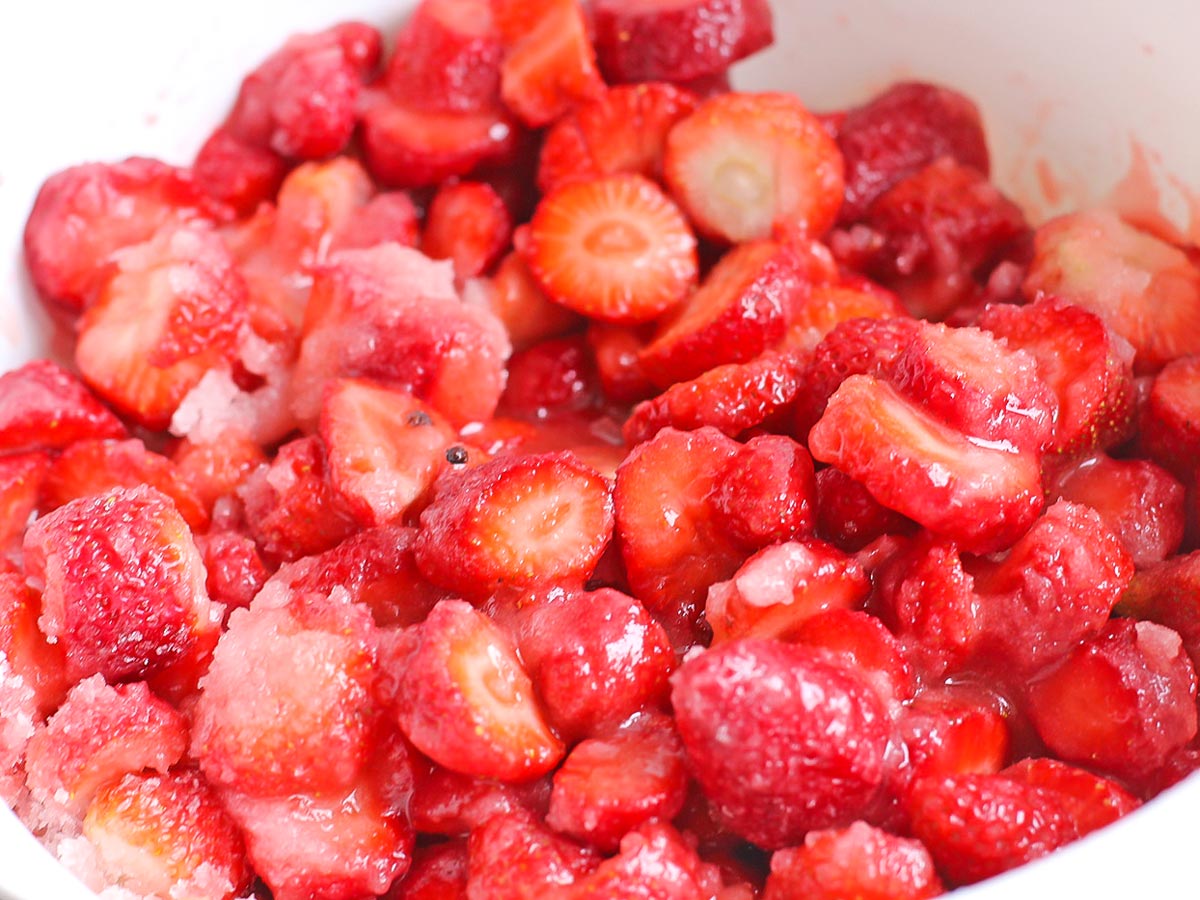 • Al día siguiente, veréis como las fresas han soltado todo su jugo, mezclándose el azúcar y el limón.