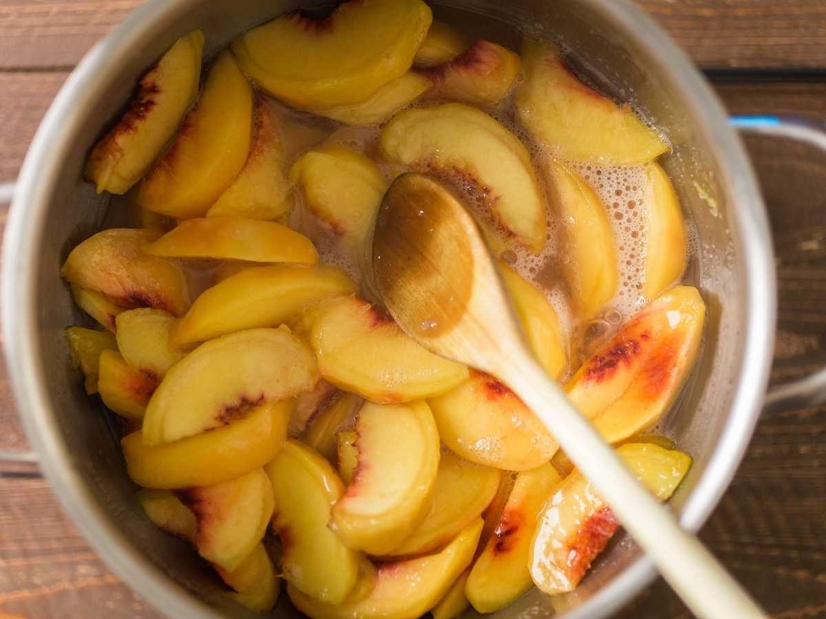 - Cocinamos a fuego medio hasta que los melocotones se ablanden, lo que tarda unos 10-15 minutos.