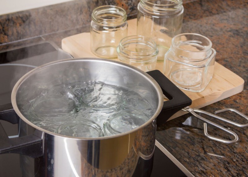 - Esteriliza los frascos de vidrio y sus tapas sumergiéndolos en agua hirviendo durante 10 minutos. Déjalos secar boca abajo sobre un paño limpio.