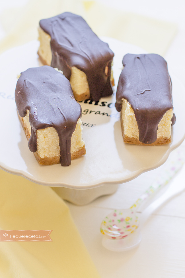 Por encima lleva chocolate, os aseguro que es muy sencillo de hacer y además le da un contraste de sabores delicioso, seguro que ya estáis deseando probarlas. Os animo a hacerlas porque no son nada difíciles.