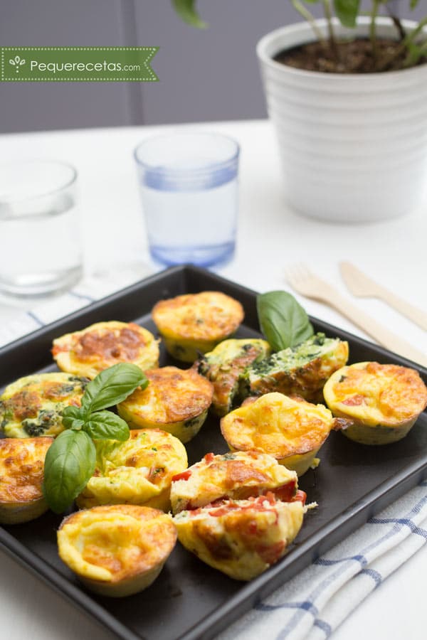Nos ha gustado mucho esta receta y se nos ha ocurrido que es muy buena idea hacerla en los moldes más pequeños y así presentar las mini tortillitas como picoteo en una fiesta.