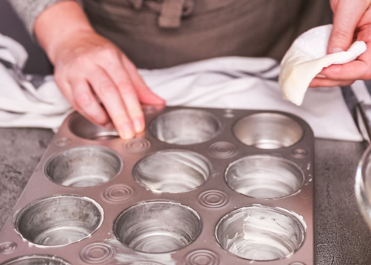 - Mientras se calienta, prepara una bandeja para muffins engrasándola o utilizando moldes de silicona.
