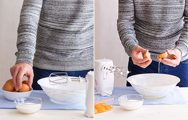 - Reservamos las yemas de los huevos para preparar otro tipo de receta, por ejemplo unas ricas natillas caseras.