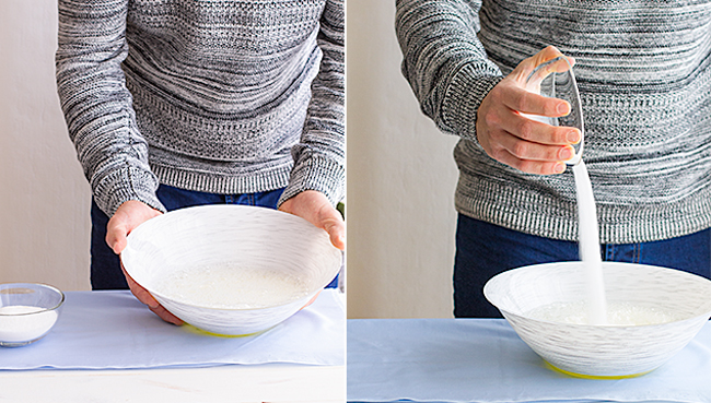 - Para ayudar a que las claras monten, agregamos una pizca de sal antes de comenzar a batir.