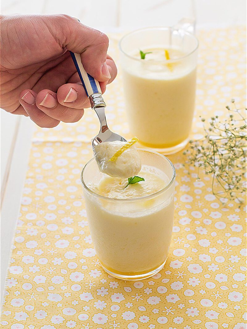 - Una vez nos quede una masa suave y esponjosa, vertemos la mousse de limón en vasitos.